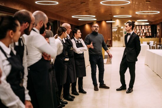 In sala, l’eleganza e la professionalità di Michele e Luca, maitre esperti, insieme al team di camerieri e collaboratori, danno vita a un servizio attento e armonioso, pensato per far sentire ogni ospite davvero speciale.