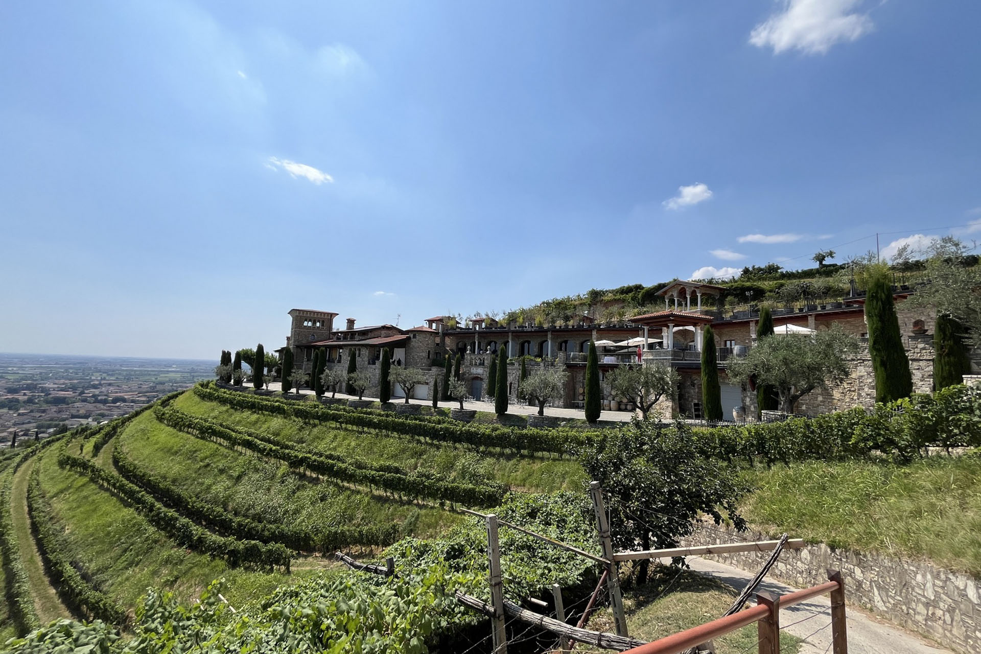 Immersa tra le colline della Valtenesi, Cantina Bottenago unisce modernità e raffinatezza. Tre piani panoramici, ampi giardini e un suggestivo lago interno accolgono matrimoni ed eventi aziendali con stile. La vista sul paesaggio, i dettagli curati e l’atmosfera calda rendono ogni occasione un momento da ricordare.